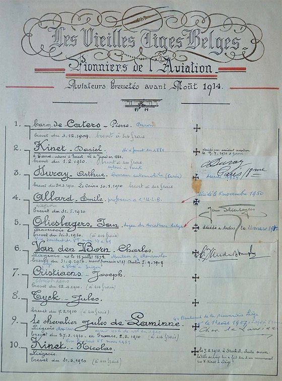 Précédent - Alfred Lanser sur Farman à Kiewit en 1910. Lanser réalisant le record avec trois passagers, ses soeurs, en volant de Hasselt à Bruxelles. Meeting de Mondorf-les-Bains.
