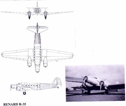 5° Une autre réalisation exceptionnelle de la firme est le prototype du trimoteur stratosphérique R35 prévu pour le transport d’une vingtaine de passagers dans une cabine pressurisée. Ce prototype s’écrasa à la fin d’une présentation devant la Commission du Fonds de financement, qui devait se limiter à un démonstration de maniabilité « queue haute » sur la piste de l’aérodrome, mais l’avion décolla…, alors qu’il n’était pas parfaitement équilibré.
