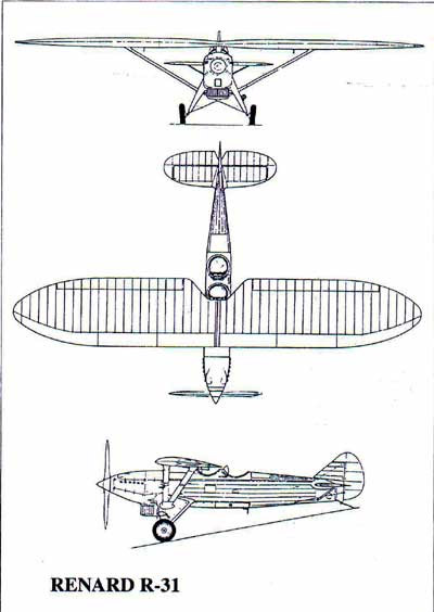 3° La plus importante réalisation des Constructions aéronautiques Renard quant au nombre d’appareils produits et à leur utilisation dans des conditions de guerre concerne l’avion monoplan d’observation R31 équipé d’un moteur Rolls Royce de 500 CV et d’un armement léger.