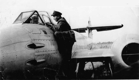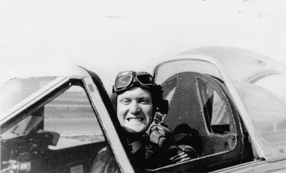 Le commandant d'escadrille Léon Divoy à bord d'un Meteor F4