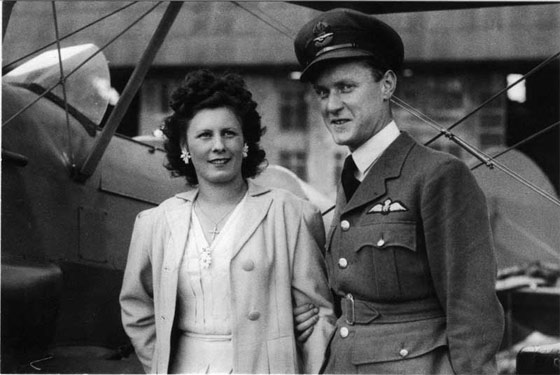 Le Flight Lieutenant Divoy et son épouse, à côté d'un SV4