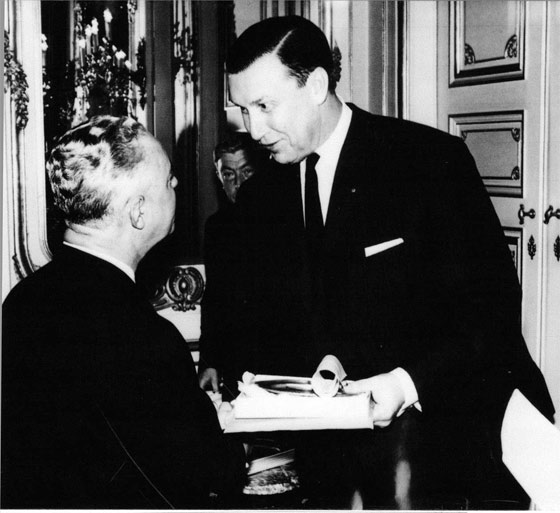 Le Baron Fossion entre le Commandant Aviateur Michel Mandl à gauche et