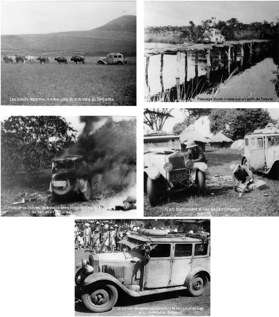 - Le 30 juillet l’expédition reprend la route. Lamarche et Fabry à bord de la voiture restante. Carton de Wiart et Crouquet continuent à bord d’une voiture louée à un colon Sud-Africain.