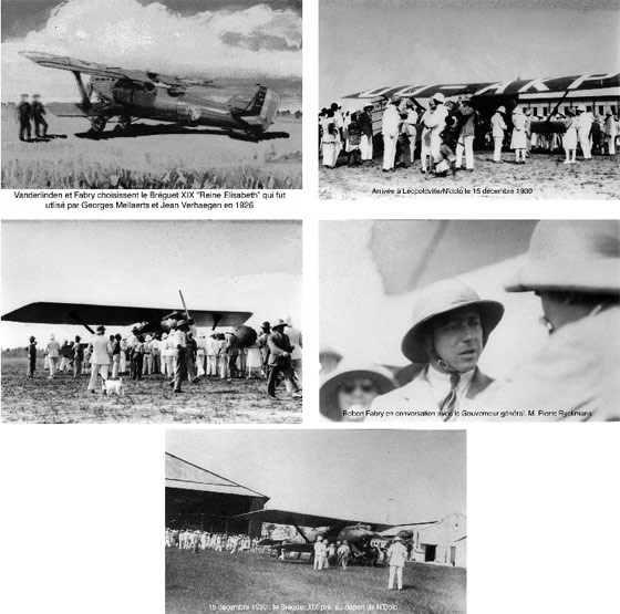 Le 7 décembre 1930, avec le capitaine aviateur Omer Vanderlinden, le lieutenant aviateur Robert Fabry s’envole pour effectuer la liaison Bruxelles-Léopoldville à bord d’un Bréguet XIX équipé de réservoirs supplémentaires mais sans radio ni feux de position.