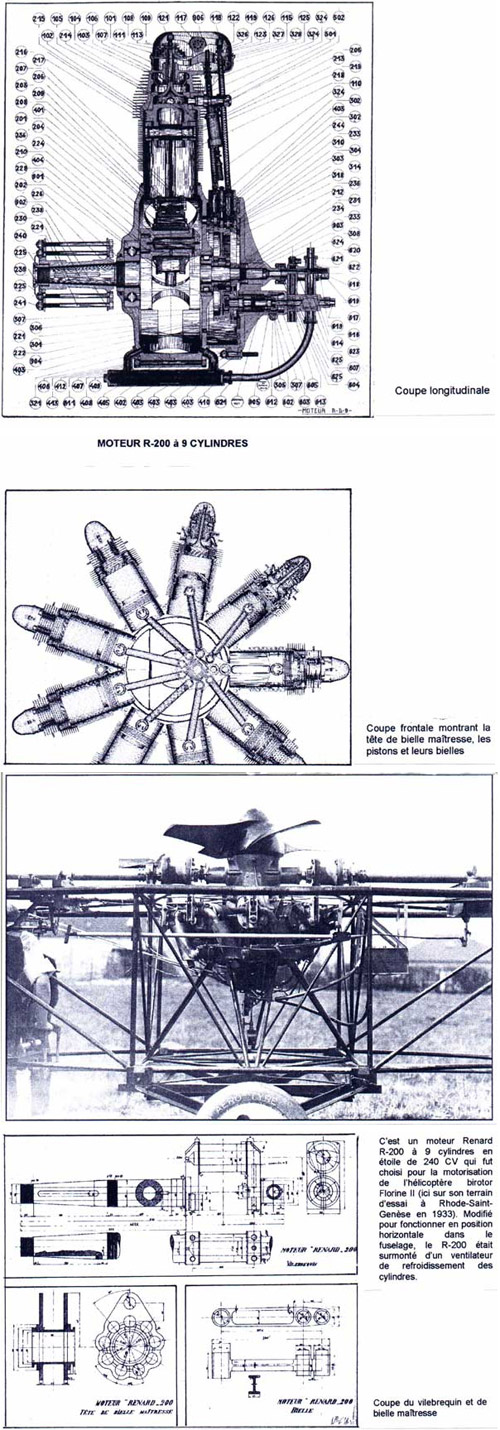 Le moteur 200 fut aussi monté sur l’hélicoptère expérimental Florine II, lorsque ce dernier réalisa un record mondial de durée de vol en 1933. Notons au passage que le fuselage en tubes soudés de l’hélicoptère avait été assemblé dans les ateliers Renard.