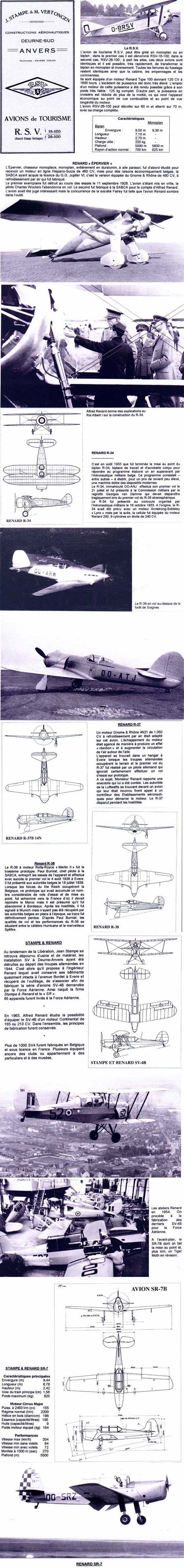 1° La première réalisation très marquante est l’avion R.S.V. qui remplit brillamment le programme d’essais prescrit pour un avion d’école. L’avion était en effet destiné initialement à l’école de pilotage créée à Deurne près d’Anvers, par MM. Stampe, lieutenant et pilote du Roi, et Vertongen, officier et moniteur de réserve. La dénomination R.S.V. s’explique par les initiales de ces deux noms et de celui de l’ingénieur concepteur.