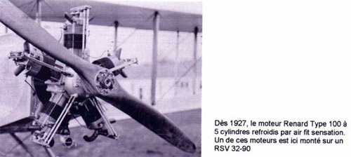 4° Les moteurs en étoile refroidis à l’air conçus par Alfred Renard firent sensation dès 1927 avec la présentation du type 100 à 5 cylindres, utilisant un système original de commande des soupapes qui fut breveté dans plusieurs pays. Ce moteur vit sa puissance portée à 120 et 140 CV ; il fut installé sur des R.S.V., sur le R16, le R17 et le trimoteur R30, ainsi que sur des appareils développés par d’autres constructeurs belges. Quelques exemplaires de ce moteur existent encore dans le patrimoine du « Fonds national Alfred Renard » déposé au Musée de l’Armée (Section Air) de Bruxelles.