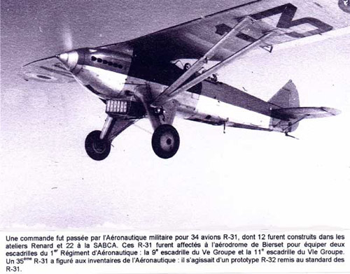 Trente-quatre exemplaires de l’avion R31furent réalisés pour l’Aéronautique militaire belge, dont 12 furent construits dans les ateliers Renard d’Evere et 22 à la SABCA. Ces avions équipèrent deux escadrilles à Bierset et onze d’entre eux étaient toujours opérationnels près d’Ostende lors de la capitulation belge à la fin du mois de mai 1940. Ils furent alors détruits au sol
