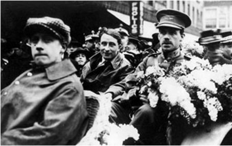 Le Roi Albert I et le Roi d’Italie saluent le Cdt Jacquet et Edmond Thieffry