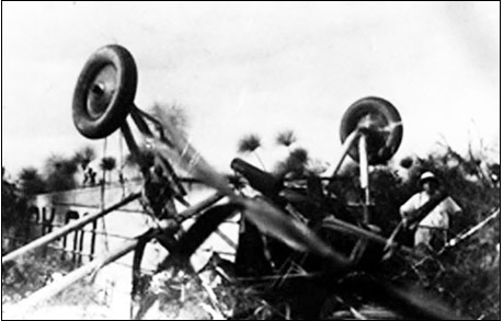 Mais notre équipage n’est pas encore au bout de sa peine. Une météorologie capricieuse, pluies et plafond de nuages bas, ainsi qu’un moteur central récalcitrant, obligent Thieffry à prendre une dernière décision de déroutement sur l’aérodrome d’Irebu. Après quelques hésitations au niveau de la navigation, le poste d’Irebu apparaît dans les frondaisons de la forêt. Alerté par les bruits d’avion, le responsable du poste a fait allumer deux feux de bois. Roger obtient ainsi une indication du vent et se pose à la perfection sur le sol de la colonie.