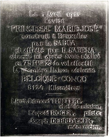 Le 16 mars 1950, inauguration d'une plaque à l’aéroport de N’Dolo-Léopoldville, commémorant le premier vol de la métropole à la colonie, à l'occasion de la 1.000ème liaison aérienne Belgique-Congo